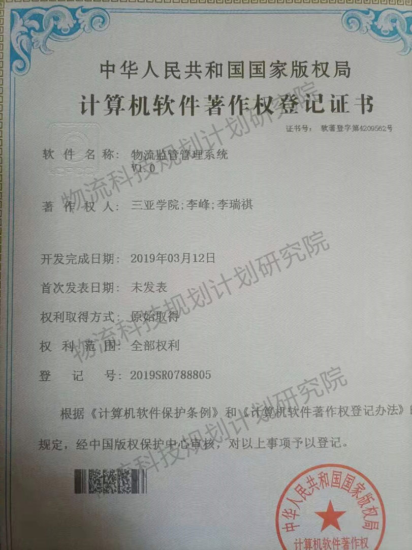 物流監(jiān)管管理系統(tǒng)V1.0(證書(shū)號(hào):第4209562號(hào))